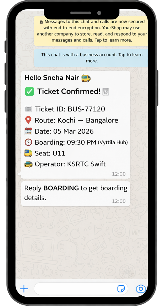Send travel reminders automatically on WhatsApp so customers never miss reporting time, pickup point details, ticket updates, or schedule changes.